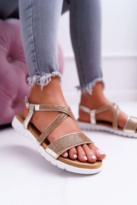 Damskie Sandały Lu Boo Z Cyrkoniami 406-5 Złote Stella