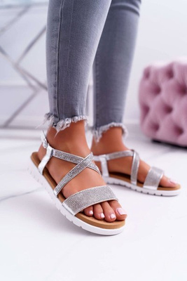 Damskie Sandały Lu Boo Z Cyrkoniami 406-5 Srebrne Stella