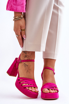 Sandały Klasyczne Zamsz Słupek Fuksja Amina