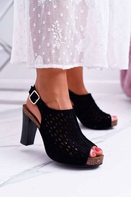 Czarne Damskie Sandały Na Słupku Zamsz NewGenua