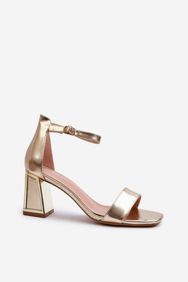 Sandały Damskie Obcas Klocek Eko Skóra Złote Irivana LL-326