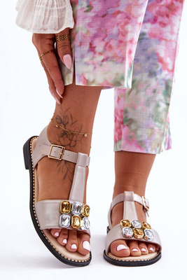Sandały Damskie Kamienie Beżowe S.Barski KV-2775-30