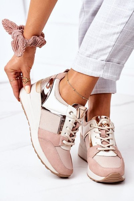 Sportowe Buty Sneakersy Na Koturnie Beżowe Adeyla