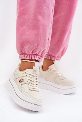 Sneakersy Damskie Eko Skórzane Na Platformie Beżowe Penolle