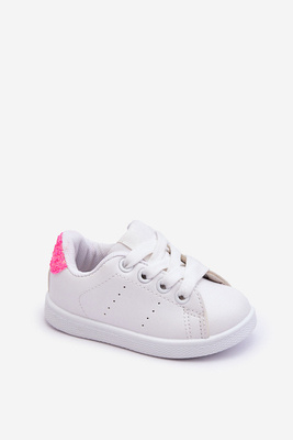 Buty Sportowe Dziecięce Biało-Neonowo Różowe Glossy 804