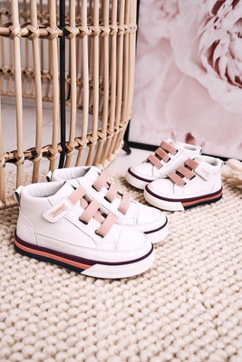 Dziecięce Wysokie Trampki Ze Ściągaczem Biało Różowe Baxter