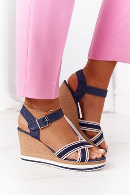 Sandały Na Koturnie W Stylu Marynarskim Granatowe Sea Wave