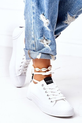 Damskie Skórzane Tenisówki Białe Nicole 2640