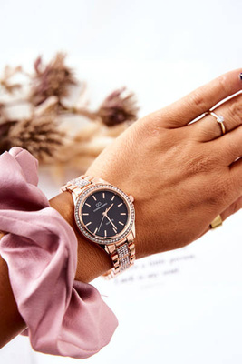 Damskie Zegarek Na Bransolecie Z Cyrkoniami ERNEST Różowe Złoto