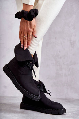 Botki Trapery Damskie Wiązane Czarne Sherill