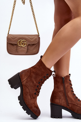 Botki Damskie Na Obcasie Sznurowane Brązowe Lunielle 260058FX-SU