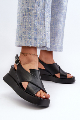 Damskie Sandały Eko Skóra Platforma I Koturn Czarne Vaiara