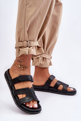 Klapki Damskie Skóra Czarne Harmony 55-216