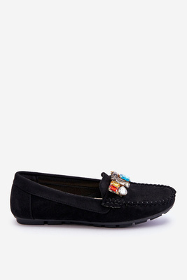Mokasyny Damskie Zamsz Kryształki Czarne Lucille