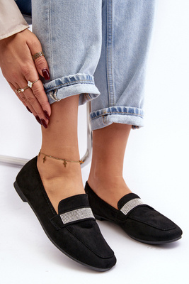 Mokasyny Damskie Cyrkonie Czarne Ralrika YD6-52
