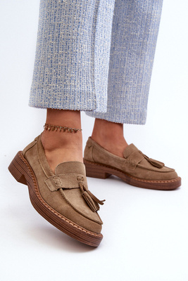 Damskie Mokasyny Zamszowe Z Frędzlami Brązowe D&A TW107
