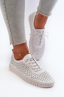 Trampki Damskie Ażurowy Wzór Skóra Białe Ilvima