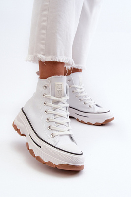 Trampki Damskie Wysokie Na Platformie Białe Valvia