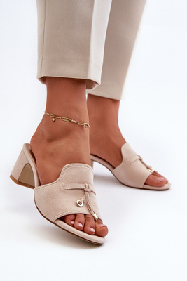 Klapki Damskie Na Obcasie Eko Zamszu Beżowe Jemenna