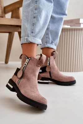 Botki Ocieplane Damskie Suwak Ciemnobeżowe Calvaro