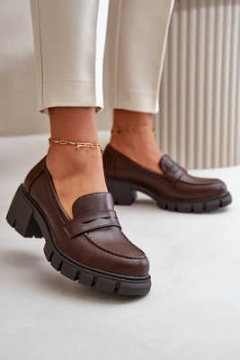 Półbuty Eko Skórzane Damskie Niski Obcas Ciemnobrązowe Menloa