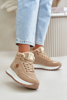Ocieplane Buty Sportowe Botki Damskie Na Platformie Khaki Ariatte