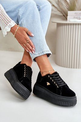 Damskie Sneakersy Masywna Podeszwa Ocieplane Złoty Detal Czarne Lotira