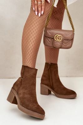 Ocieplane Damskie Botki Eko Zamszowe Brązowe Arkesia