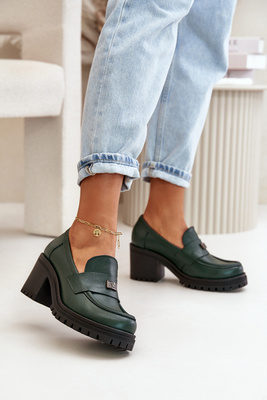 Damskie Eleganckie Półbuty Na Słupku Skóra Naturalna Ciemnozielone Zazoo 20168