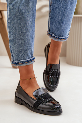 Mokasyny Damskie Lakierowane Ozdoba Vinceza 58389 Czarne