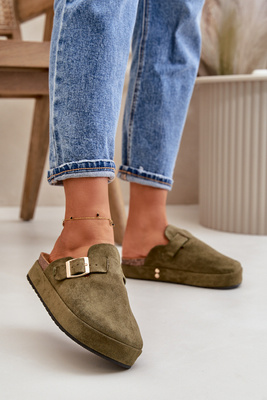 Chodaki Klapki Damskie Platforma Klamra Ciemnozielone Terilaina