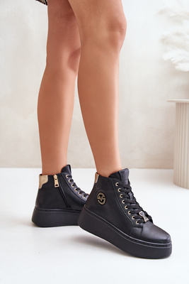 Sneakersy Damskie Wysokie Skóra Naturalna Platforma Czarne Vinceza 66707
