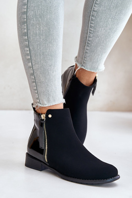 Botki Ocieplane Płaski Obcas Niska Cholewka Czarne Zinariella