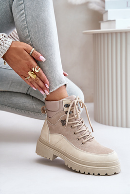 Damskie Sznurowane Trapery Botki Beżowe Rabaria