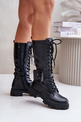 Kozaki Glany Z Saszetką Eko Skórzane Do Połowy Łydki Czarne Temisza