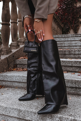Kozaki Na Szpilce Wywinięta Cholewka Zamek Ocieplane Czarne Bellinna