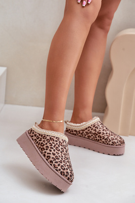 Damskie Śniegowce Platforma Futerko Panterka Brązowe Remenia