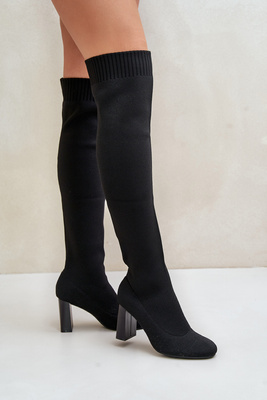 Kozaki Na Słupku Ze Skarpetkową Cholewką Za Kolano Czarne Esanira