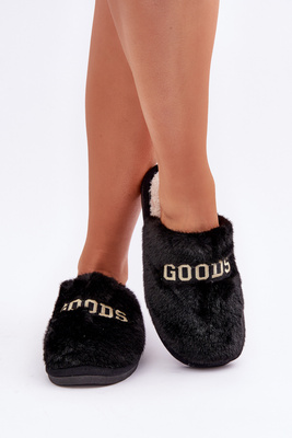 Damskie Kapcie Futerkowe Z Napisem Czarne Kalelia