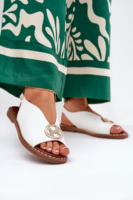 Sandały Damskie Eko Skóra Płaskie Z Ozdobą Białe Iseliria