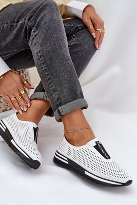 Półbuty Wsuwane Damskie Skórzane Białe S.Barski LR51-672