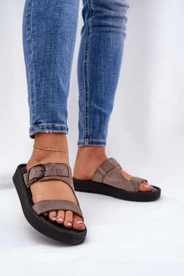 Damskie Klapki Z Naturalnego Zamszu Platforma Brązowe Zazoo 3024