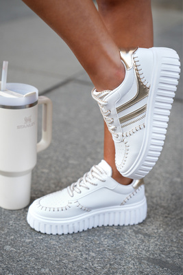 Eko Skórzane Sneakersy Na Platformie Złote Ofenale