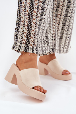 Damskie Klapki Na Platformie I Obcasie Typu Słupek Beżowe Omeisa