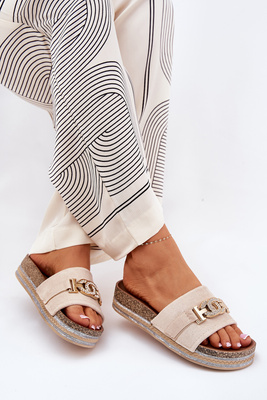 Damskie Klapki Ze Złotą Ozdobą Na Platformie Beżowe Eanes
