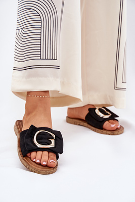 Klapki Damskie Płaskie Z Ozdobą Czarne Nellodra
