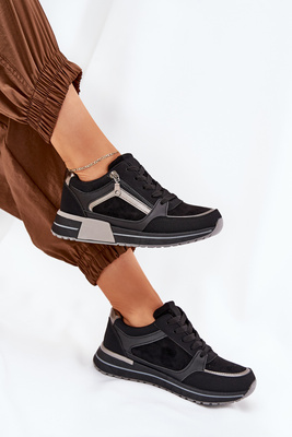 Buty Sportowe Damskie Na Platformie Z Suwakiem Czarne Larys