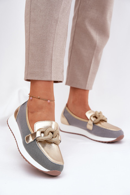 Mokasyny Damskie Skóra Naturalna Ozdoba Złote D&A LR51-966