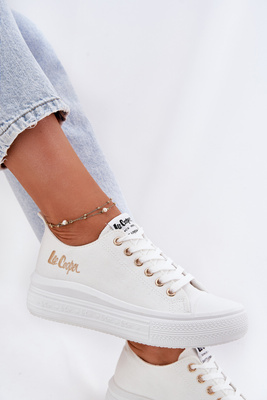 Damskie Trampki Na Platformie Materiałowe Białe Lee Cooper LCW-24-44-2462L