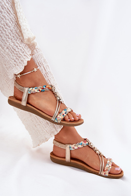 Płaskie Damskie Sandały Plecione Paski Przypinki Złote Artiker 54C1323